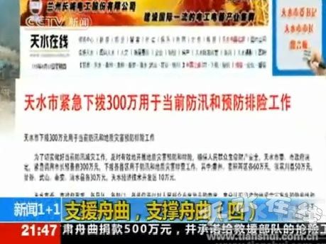 ■8月12日晚中央電視臺(tái)《新聞“1+1”》采用《天水在線》新聞圖片和網(wǎng)頁第一時(shí)間播報(bào)天水災(zāi)情。
