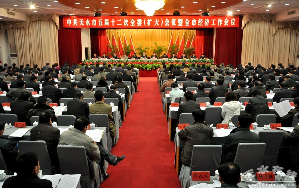 12月30日上午,中共天水市委五屆十二次全委(擴(kuò)大)會議暨全市經(jīng)濟(jì)工作會議在天水迎賓館召開。會議傳達(dá)學(xué)習(xí)了全省經(jīng)濟(jì)工作會議精神,全面總結(jié)了今年及“十一五”時期我市經(jīng)濟(jì)社會發(fā)展取得的成就,深入分析了當(dāng)前的經(jīng)濟(jì)形勢,明確提出了全市明年經(jīng)濟(jì)工作的總體要求和重點任務(wù)。