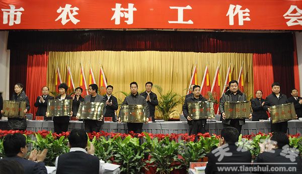1月25日,全市農(nóng)村工作會(huì)議在秦州召開。省政協(xié)副主席、市委書記張景輝在會(huì)上強(qiáng)調(diào),全市農(nóng)村工作要以科學(xué)發(fā)展觀為指導(dǎo),加快轉(zhuǎn)變農(nóng)業(yè)發(fā)展方式,全面落實(shí)強(qiáng)農(nóng)惠農(nóng)政策,積極推進(jìn)農(nóng)村改革創(chuàng)新,著力構(gòu)建城鄉(xiāng)經(jīng)濟(jì)社會(huì)發(fā)展一體化新格局,確保農(nóng)業(yè)穩(wěn)定發(fā)展、農(nóng)民持續(xù)增收、農(nóng)村社會(huì)和諧,推動(dòng)全市經(jīng)濟(jì)社會(huì)跨越式科學(xué)發(fā)展。