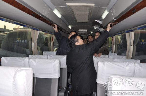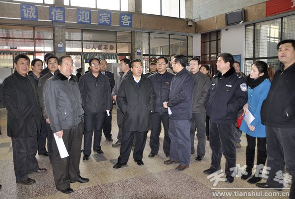 在天水長途汽車站和麥積區(qū)長路客運站,柴金祥一行聽取了車站負(fù)責(zé)人有關(guān)春運工作的情況介紹。柴金祥要求,要加強安全管理,做好應(yīng)對雨雪、冰凍等災(zāi)害天氣的應(yīng)急預(yù)案,確保司機和乘客平安出行,絕對禁止易燃易爆物品進站上車,堅決杜絕車輛駛出站外中途加價的違法行為,努力營造和諧春運氛圍。