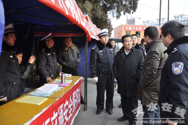 1月29日,市委常委、常務(wù)副市長柴金祥帶領(lǐng)秦州、麥積兩區(qū)政府、市建設(shè)局、市綜合執(zhí)法局、市交警支隊、市消防支隊負(fù)責(zé)人,檢查了兩區(qū)城市管理、消防、交通安全等工作。