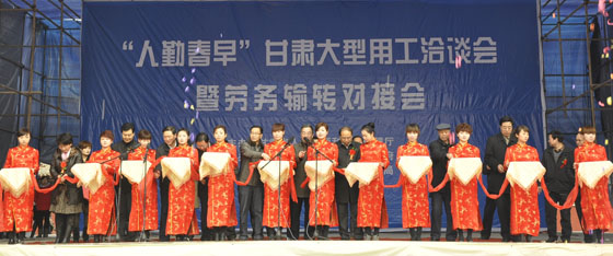 (2011年2月11日,由甘肅省人社廳,天水市人社局、秦安縣人民政府承辦的首場“人勤春早”甘肅大型用工洽談會(huì)暨勞務(wù)輸轉(zhuǎn)對(duì)接會(huì)在秦安縣興國文化廣場隆重舉行)