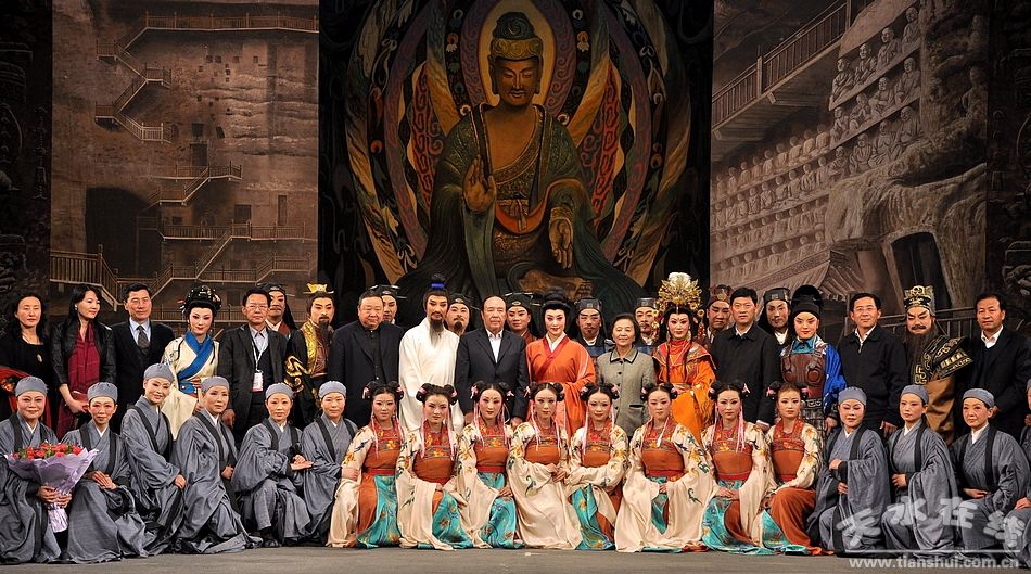 3月12日晚,位于北京西城區(qū)平安里的梅蘭芳大劇院人頭攢動,熱鬧非凡。應(yīng)文化部藝術(shù)司、中國戲劇家協(xié)會邀請,由甘肅省委宣傳部、甘肅省文化廳,天水市委、市政府主辦的大型歷史秦劇《麥積圣歌》赴京演出隆重拉開大幕,一股強(qiáng)勁的西北風(fēng)讓北京戲迷陶醉在麥積山石窟藝術(shù)輝煌燦爛的藝術(shù)光芒里驚羨不已。