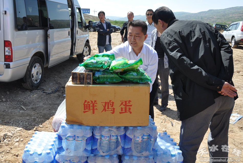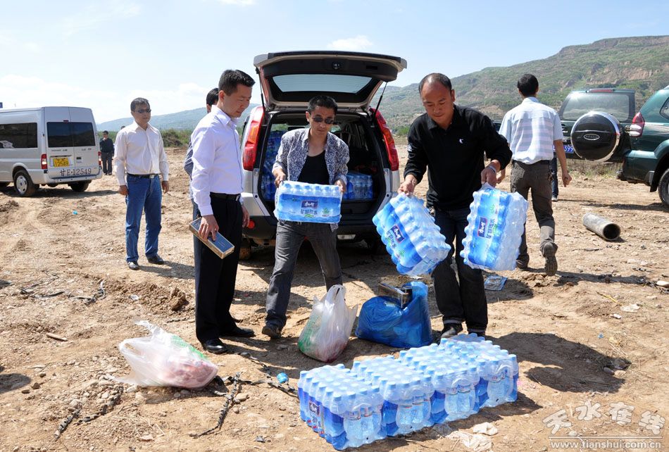 當(dāng)日,天水市自來水公司經(jīng)理王利民、黨總支書記馬進(jìn)國帶領(lǐng)各部門負(fù)責(zé)人,前往施工現(xiàn)場看望慰問一線施工人員,給他們帶去了肉、蛋等生活必需品以及茶業(yè),礦泉水等消署降溫的慰問品。