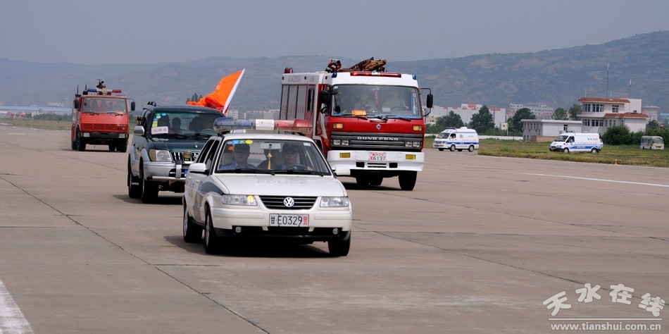 (消防、公安、醫(yī)療、武警等車輛急速駛向事故地點 )