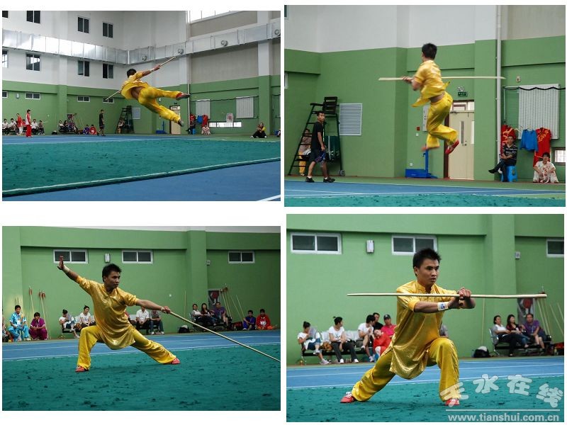 圖為我市男子棍術(shù)選手閆鋒國(guó)比賽中