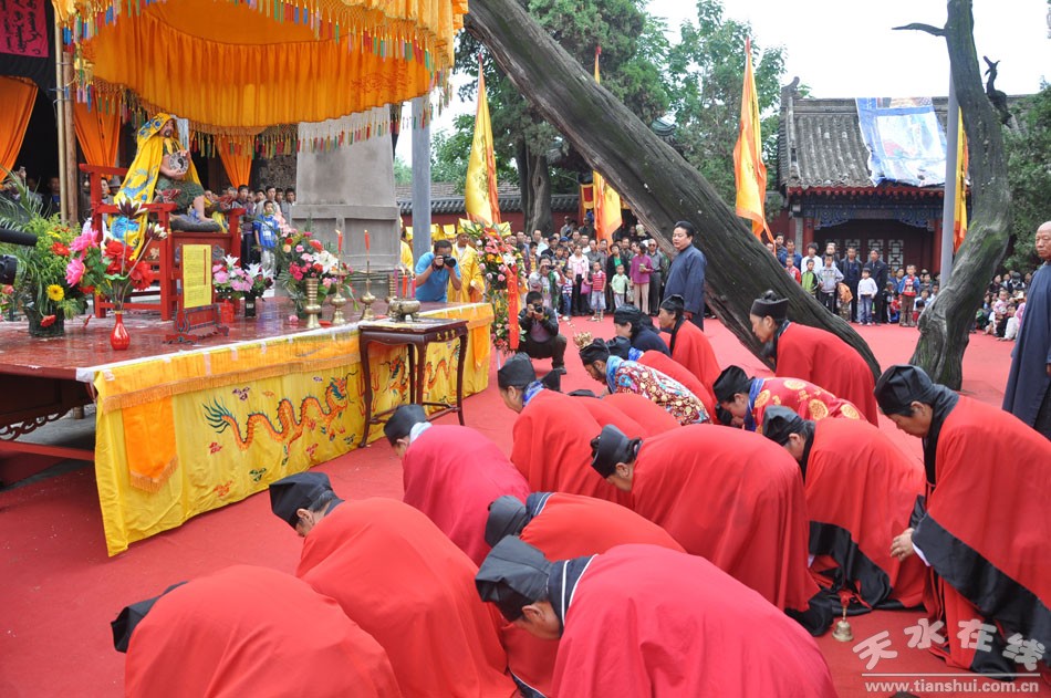 秋祭典禮活動從農(nóng)歷七月十八日開始。當天清晨,兩百多名身著統(tǒng)一服飾的儀仗隊伍在嗩吶、鑼鼓伴奏之下浩浩蕩蕩的沿伏羲廟及伏羲路步行街舉行了迎神、迎圣水、出榜文儀式。農(nóng)歷七月十九日上午九時五十分,主持人宣布祭祀典禮開始。三天的秋祭活動中,同時舉行戲劇公演、嗩吶演奏、舞獅及武術表演,可謂活動內容豐富多彩,極具觀賞性。