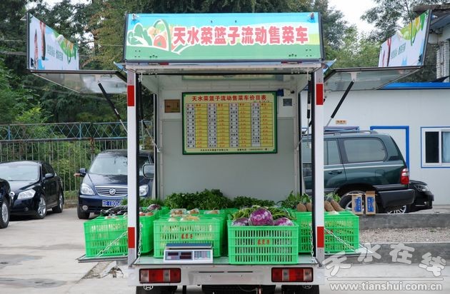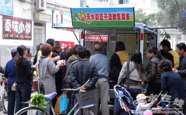 (市民在菜籃子流動售菜車前選購蔬菜)