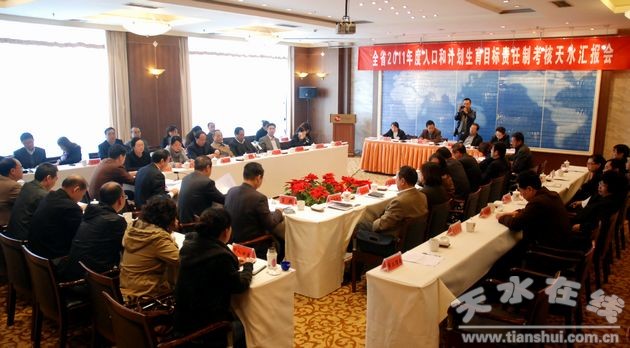 (郭奇若代表天水市委、市政府向考核工作組匯報天水市2011年度人口和計劃生育工作)