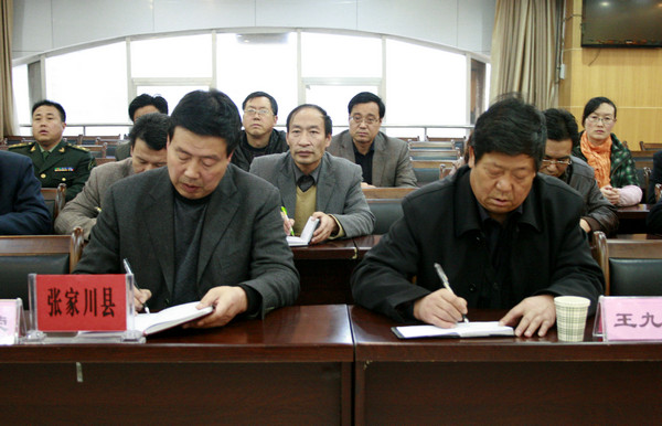 ( 張家川回族自治縣委常委、副縣長馬全榮,縣人大副主任王九仲及水利、農(nóng)業(yè)等單位負(fù)責(zé)人在張家川縣分會場收聽收看會議實況。)