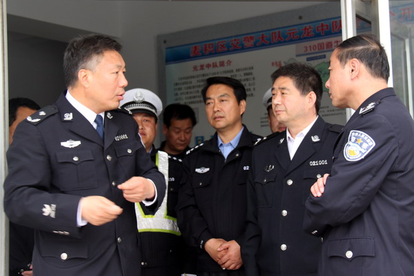 4月23日下午,市政府黨組成員、市公安局黨委書記、局長張江武,市公安局副局長、交警支隊支隊長霍秦生,副支隊長緱西保,麥積公安分局政委劉心濤和公安、交警相關(guān)部門負(fù)責(zé)人一行,深入310國道牛麥段及沿線伯陽、元龍、三岔、東岔四個鄉(xiāng)鎮(zhèn)派出所和元龍交警中隊,就道路交通事故多發(fā)點段治理,通過警務(wù)協(xié)作機(jī)制開展交通事故救援、突發(fā)事件處置等工作進(jìn)行了專項督導(dǎo)和實地調(diào)研,并親切看望了一線民警。