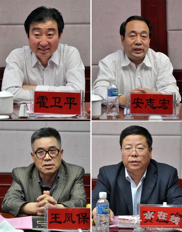 市政府副市長(zhǎng)霍衛(wèi)平、市政協(xié)副主席安志宏、市政協(xié)原副主席王鳳保、市人大農(nóng)業(yè)工委主任劉新全、市政協(xié)提案委員會(huì)主任溫曉東、麥積區(qū)人大常委會(huì)主任賈應(yīng)珍、麥積區(qū)政協(xié)原主席張廣祿、市委宣傳部紀(jì)檢組長(zhǎng)王再盛、市工商聯(lián)副主席蔡建春出席會(huì)議。 《人民政協(xié)報(bào)》總編室副主任路強(qiáng),《絲綢之路》副總編馬玉蕻及著名詩(shī)人、市文聯(lián)副主席、《天水日?qǐng)?bào)》副總編、武山縣副縣長(zhǎng)王若冰,著名作家賈凡,資深文化策劃人徐云峰出席會(huì)議。唐根堂先生的老戰(zhàn)友、老朋友張治國(guó)、楊思元、陶發(fā)科、漆自珍以及我市文學(xué)界的朋友參加會(huì)議。