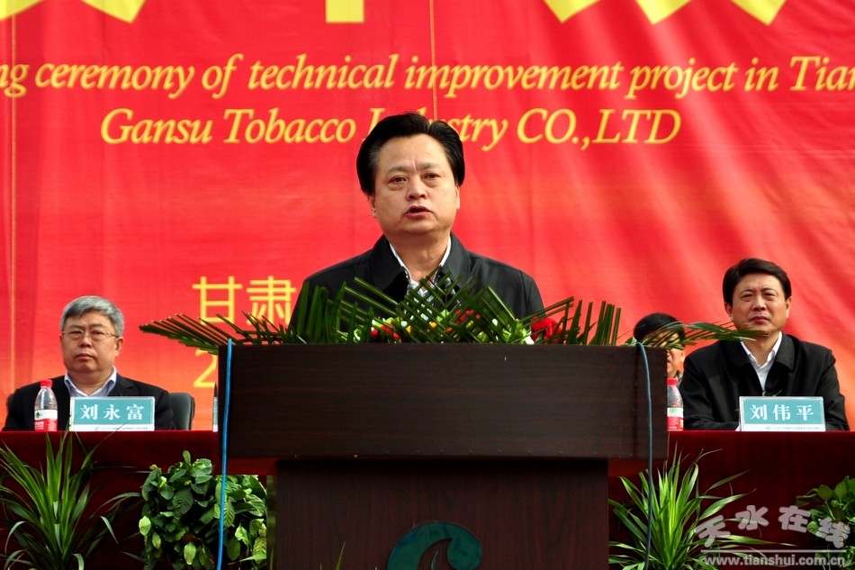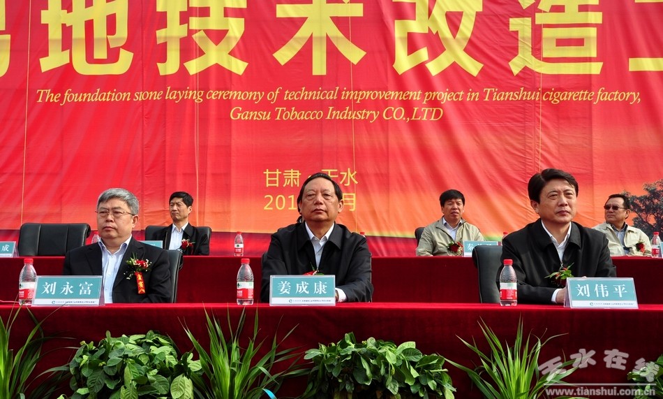 劉永富在奠基儀式上致辭,他說,國家煙草專賣局決定實施天水卷煙廠易地技術改造項目工程,為甘肅煙草工業(yè)加快發(fā)展注入了強大動力。甘肅煙草工業(yè)有限責任公司要全面貫徹實施卷煙上水平戰(zhàn)略,落實樹品牌、做貢獻要求,加快工程建設進度,加速技術創(chuàng)新能力,加強卷煙品牌建設,科學管理,保證質量,努力把天水卷煙廠建設成為技術、管理、產品、效益一流的優(yōu)秀企業(yè),促進甘肅煙草工業(yè)在更高層次、更高水平取得更好更快的發(fā)展。天水市委、市政府和省直各有關部門,要全力關心支持這個項目,及時解決項目建設中存在的困難和問題,確保項目早日建成投產。