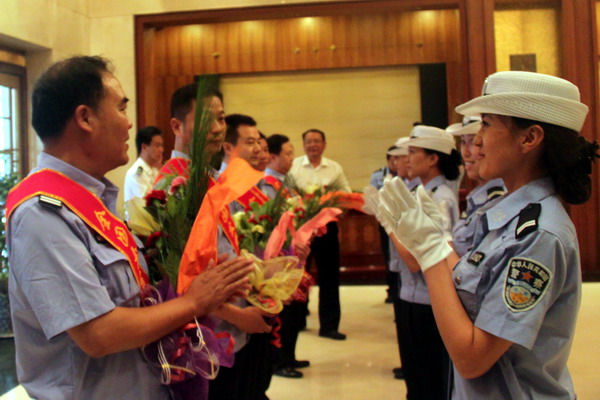 18日上午9時,隨著莊嚴(yán)的《人民警察之歌》奏響,全國交警系統(tǒng)執(zhí)法標(biāo)兵規(guī)范執(zhí)法宣講報告會在天水交警支隊八樓會議室隆重召開。報告會由宣講團(tuán)團(tuán)長、廳交管局王敏書記主持。支隊政委楊金生代表天水交警對宣講團(tuán)的到來表示熱烈歡迎和誠摯感謝,并號召全市廣大交通民警及協(xié)管員向報告團(tuán)成員認(rèn)真學(xué)習(xí),以優(yōu)異成績迎接黨的十八大召開。來自湖南吉首市公安局交警大隊矮寨中隊中隊長吳浩、海南?谑泄簿纸痪ш犑鹿侍幚泶箨犆窬趾I、湖北省公安廳交警總隊高管支隊十堰大隊大隊長王進(jìn)、廣西柳州市公安局交警支隊事故處理大隊四中隊中隊長邵立、廣東揭陽市公安局交警支隊機動巡邏大隊四中隊隊長林濤5名全國交警系統(tǒng)執(zhí)法標(biāo)兵,分別從規(guī)范執(zhí)法、便民服務(wù)、事故處理、警衛(wèi)護(hù)衛(wèi)等方面介紹了工作經(jīng)驗,宣講了先進(jìn)事跡。
