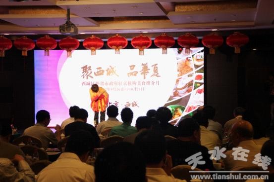 9月26日上午十點(diǎn),北京市西城區(qū)外聯(lián)辦在西單西西友誼酒店隆重舉辦“聚西城 品華夏 西城區(qū)外省市政府駐京機(jī)構(gòu)美食推介”專場(chǎng)美食推介啟動(dòng)儀式,天水市政府駐京聯(lián)絡(luò)處應(yīng)邀參加了此次活動(dòng)。會(huì)上,天水市政府駐京聯(lián)絡(luò)處安排專人講解天水特色美食及天水特產(chǎn),受到首都媒體和領(lǐng)導(dǎo)及嘉賓的歡迎。