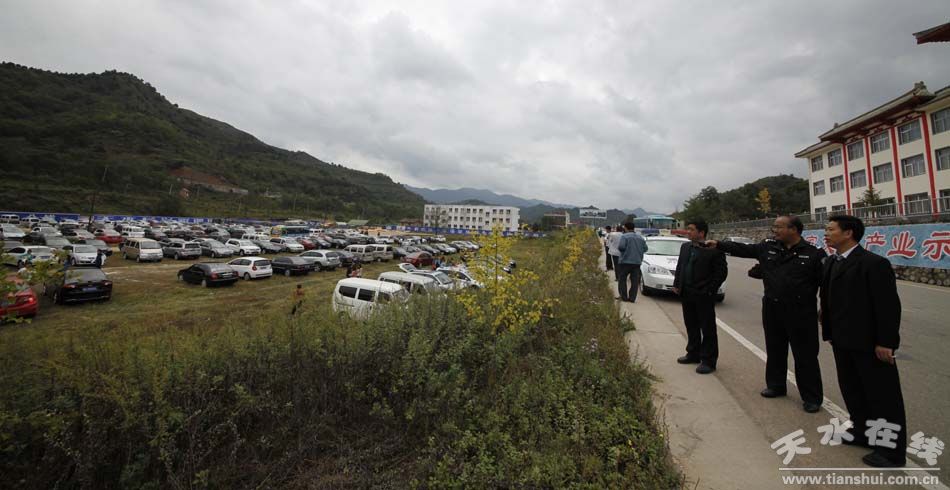 (圖為麥積山風(fēng)景名勝區(qū)管委會(huì)主任馬兆讓在位于賈河的麥積山臨時(shí)停車場(chǎng)現(xiàn)場(chǎng)指揮疏導(dǎo)車輛)