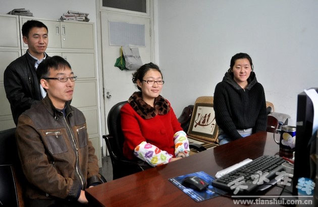 (圖為天水市委宣傳部干部在辦公室收看會議實況)