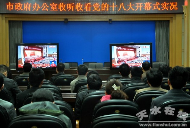 11月8日上午9時,舉世矚目的中國共產(chǎn)黨第十八次全國代表大會在北京隆重開幕。天水廣大干部群眾通過廣播電視、網(wǎng)絡(luò)等不同方式認真收聽收看了十八大開幕式直播實況。