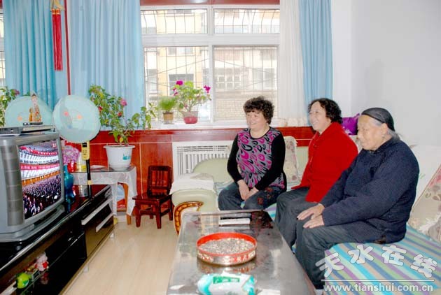 (圖為因大櫻桃而聞名的秦州區(qū)玉泉鎮(zhèn)煙鋪村組織村民收看黨的十八大開幕實況直播)