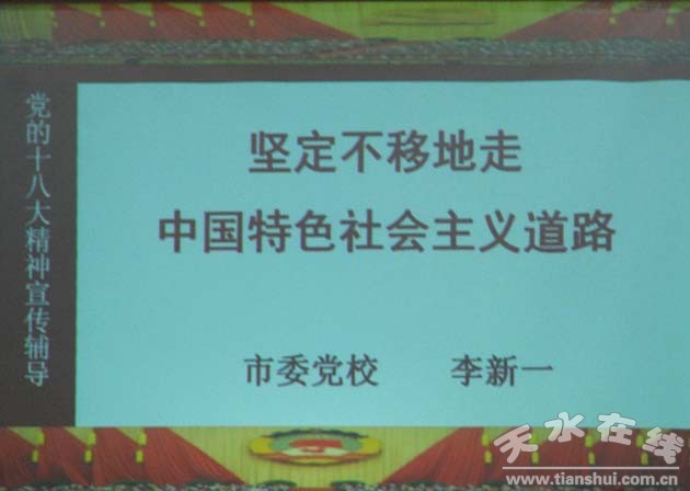 當(dāng)天下午,市委黨校常務(wù)副校長李新一教授作了題為《堅(jiān)定不移地走中國特色社會主義道路》的報(bào)告。報(bào)告中,李新一圍繞中國特色社會主義的命題,近代以來民族道路的探索,黨對當(dāng)代中國復(fù)興和發(fā)展道路的成功開辟,中國特色社會主義道路的內(nèi)涵和要求、價(jià)值及意義,進(jìn)一步堅(jiān)持和推進(jìn)中國特色社會主義道路作了詳細(xì)闡釋。同時(shí),李新一還對十八大報(bào)告做了深入解讀。