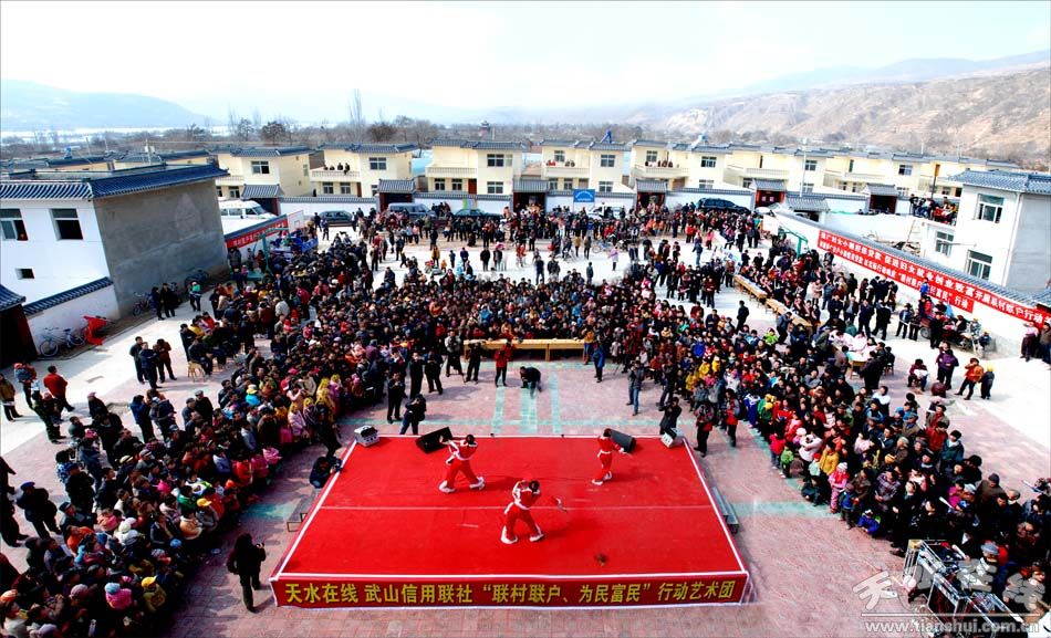 3月10日,天水在線 武山信用聯(lián)社組織全市最優(yōu)秀的文藝工作者組成“聯(lián)村聯(lián)戶、為民富民”行動藝術(shù)團走進“聯(lián)村聯(lián)戶、為民富民”行動聯(lián)系點——武山縣山丹鄉(xiāng)周家莊村進行首場巡回演出。本次演出活動由天水在線策劃,武山縣委、縣政府主辦,武山縣委宣傳部、天水在線、武山信用聯(lián)社承辦。