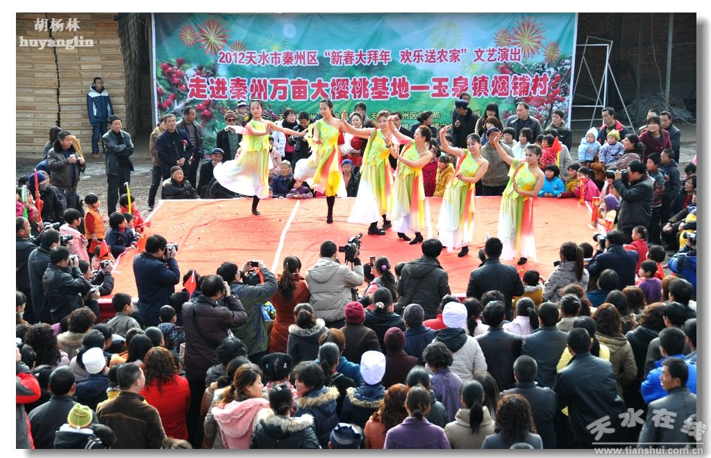 2012年2月5日(正月十四),秦州區(qū)“新春大拜年 歡樂送農(nóng)家”文藝演出在秦州區(qū)萬畝大櫻桃基地——玉泉鎮(zhèn)煙鋪村隆重上演。 本次演出由秦州區(qū)玉泉鎮(zhèn)政府、秦州區(qū)文化館、天水在線、天水新天視文化傳播中心主辦,活動還得到了天水市歌舞團、天水市秦劇團的大力支持。特別是天水市著名笑星、中國曲藝牡丹獎獲得者王海生先生帶病參加了公益演出活動。