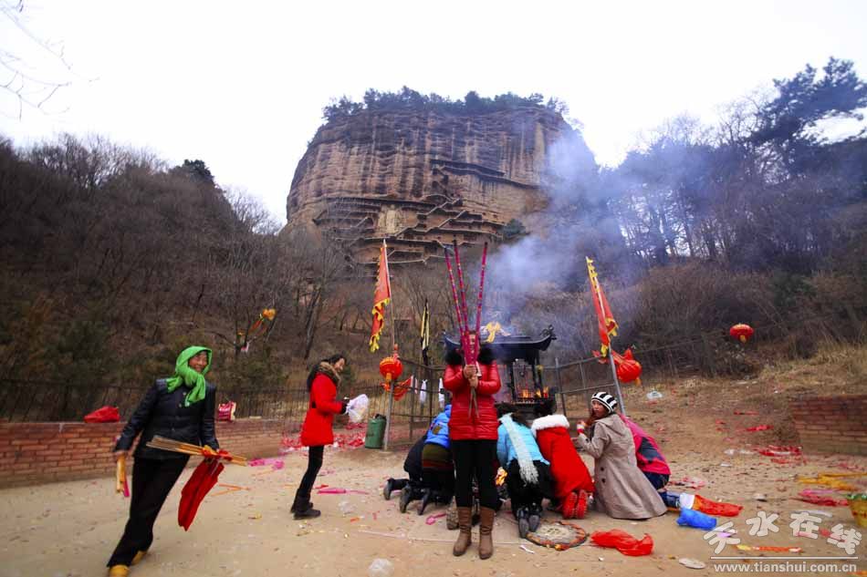 (圖為游客在麥積山敬香祈福 攝影:天水在線)