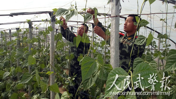 那時(shí)到了冬天,官兵要到40公里外的縣城買菜吃,趕上大雪封山,一兩個月難得出一次山!艾F(xiàn)在好了,經(jīng)過幾茬官兵的艱苦努力,中隊(duì)建起了兩座溫室大棚,保證官兵能天天吃上新鮮綠菜!”指導(dǎo)員徐向敏告訴記者。