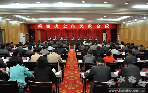 第四次全市民政會議4月19日在天水迎賓館召開。會議傳達學習黨的十八大和全國、全省民政會議精神,總結了過去五年全省民政工作,部署了今后五年民政工作的目標任務,對民政系統(tǒng)先進集體進行了表彰。