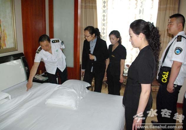 6月19日至21日,為確保“節(jié)會(huì)”期間秦州區(qū)16家定點(diǎn)住宿接待單位公共場(chǎng)所及生活飲用水衛(wèi)生安全,按照秦州區(qū)政府統(tǒng)一安排,潘臨平副所長(zhǎng)帶領(lǐng)衛(wèi)生監(jiān)督員對(duì)16家定點(diǎn)住宿接待單位逐一進(jìn)行了監(jiān)督檢查。重點(diǎn)對(duì)經(jīng)營(yíng)單位衛(wèi)生許可證、從業(yè)人員健康證持證情況,各項(xiàng)衛(wèi)生管理制度落實(shí)、檔案建設(shè)情況,顧客用具、臥具消毒更換情況,禁煙、勸阻吸煙及推進(jìn)無(wú)煙節(jié)會(huì)創(chuàng)建各項(xiàng)制度落實(shí)情況,飲用水衛(wèi)生、集中空調(diào)使用、場(chǎng)所通風(fēng)換氣等情況做了全面檢查指導(dǎo)。監(jiān)督員針對(duì)檢查中發(fā)現(xiàn)的問題下達(dá)了衛(wèi)生監(jiān)督意見書,要求及時(shí)整改。最后檢查組對(duì)各接待單位作了統(tǒng)一要求:公共場(chǎng)所法定代表人或負(fù)責(zé)人是其經(jīng)營(yíng)場(chǎng)所衛(wèi)生安全的第一責(zé)任人,各接待單位負(fù)責(zé)人一定要增強(qiáng)責(zé)任意識(shí),珍惜榮譽(yù),強(qiáng)化措施,查缺補(bǔ)漏,責(zé)任到人,全力把各項(xiàng)工作抓緊、抓實(shí)、抓細(xì),為來賓提供衛(wèi)生、安全、細(xì)致、周到的服務(wù),確保賓客高興而來、滿意而歸,為節(jié)會(huì)成功舉辦營(yíng)造和諧穩(wěn)定的住宿環(huán)境。麥積分所同步對(duì)4家定點(diǎn)住宿接待單位組織監(jiān)督員進(jìn)行了檢查。