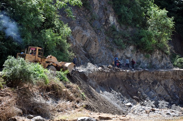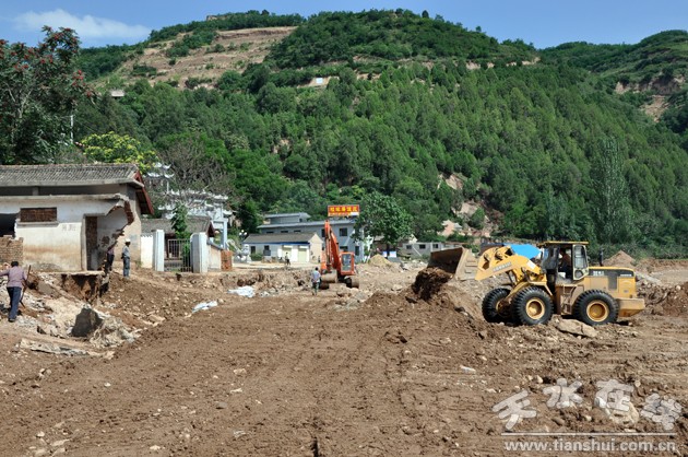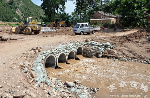 ▲麥積區(qū)街亭村水毀道路正在搶修
