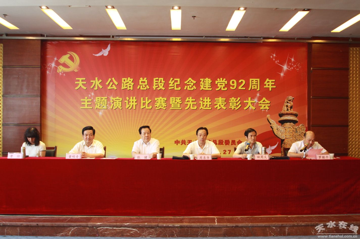 為了紀(jì)念黨的92周歲華誕,繼承和發(fā)揚(yáng)黨的優(yōu)良傳統(tǒng),進(jìn)一步深化創(chuàng)先爭(zhēng)優(yōu)活動(dòng)。6月27日,天水公路總段黨委舉行以弘揚(yáng)交通運(yùn)輸行業(yè)核心價(jià)值體系為主題的演講比賽和以先進(jìn)表彰大會(huì)的形式來慶祝黨的生日。來自基層黨支部的15名選手進(jìn)行了激情洋溢、充滿青春氣息的主題演講比賽。大會(huì)對(duì)去年“七一”以來表現(xiàn)突出、成績(jī)優(yōu)秀的5個(gè)黨支部、5名黨務(wù)工作者和36名共產(chǎn)黨員進(jìn)行了表彰。