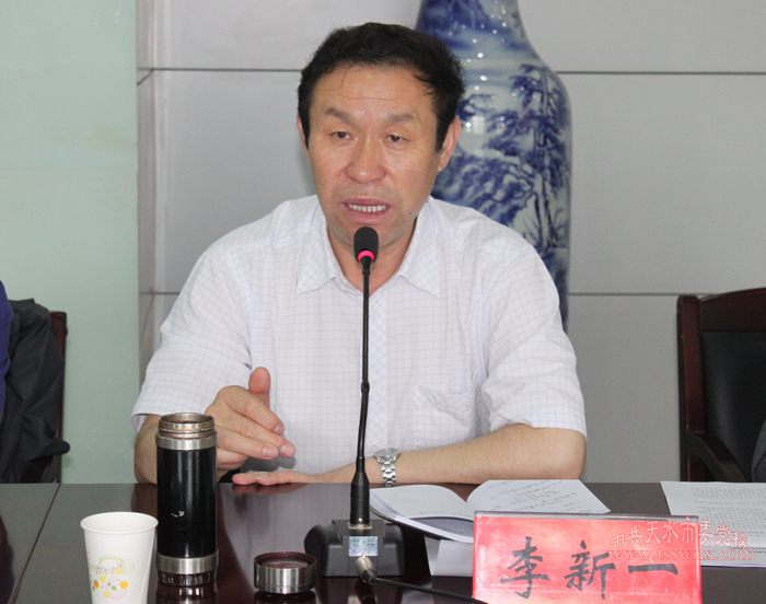 7月11日,中共天水市委黨校召開專題會議,學(xué)習(xí)貫徹中央及省市黨的群眾路線教育實踐活動工作會議精神。黨委中心組成員及中層以上干部參加會議,常務(wù)副校長、教授李新一作了重要講話。黨委書記、副校長溫欽虎傳達了中央、省、市委教育實踐活動有關(guān)文件精神。