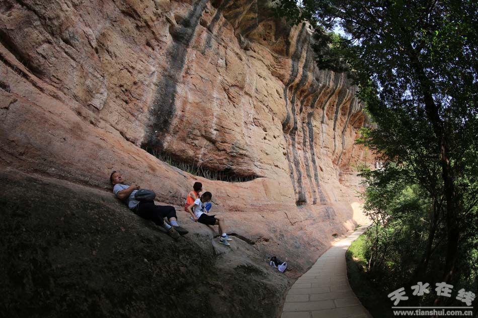 8月17日,天水在線一行再次走進(jìn)麥積山景區(qū)、仙人崖景區(qū)就災(zāi)后旅游恢復(fù)情況進(jìn)行采訪。上午9點40分,麥積山景區(qū)已經(jīng)是車水馬龍、駝鈴聲聲、游人如織。記者采訪到一位來自蘭州的游客,她是帶全家專程來麥積山旅游的,她說:“雖然受災(zāi),但麥積山很美,真的很好,這里風(fēng)景好,景區(qū)工作人員的服務(wù)也很好!”當(dāng)記者問到景區(qū)安全方面的問題時,她說:“我們游麥積山,覺得很安全,沿途的安全隱患,都進(jìn)行了治理,很多地方可看到有許多提示小牌子,如:‘注意安全’、‘小心落石’、‘游人止步’等許多安全提示牌子,有些地方還拉起了警戒線,提醒提示一目了然,我們覺得景區(qū)對游人安全是很負(fù)責(zé)任的。”