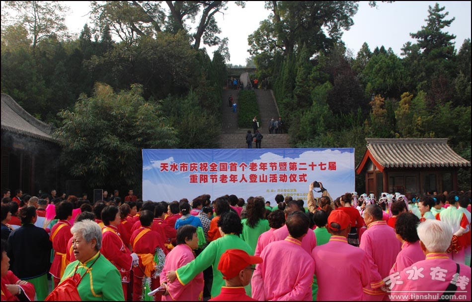 10月13日(農(nóng)歷九月初九),是我國(guó)傳統(tǒng)節(jié)日——重陽(yáng)節(jié),也是全國(guó)第一個(gè)法定老年節(jié)、甘肅省第26個(gè)老人節(jié)。天水市當(dāng)天在南郭寺景區(qū)舉行慶祝全國(guó)首個(gè)老年節(jié)暨第27屆重陽(yáng)節(jié)老年人登山活動(dòng)。