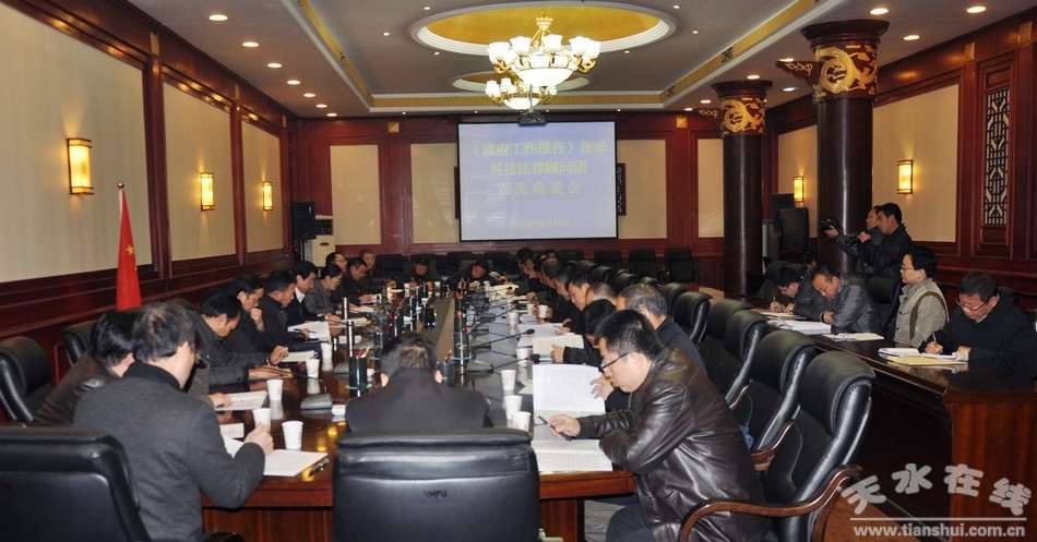 12月18日上午,天水市政府召開座談會,就《政府工作報告》(討論稿)征求科技法律顧問團意見建議。