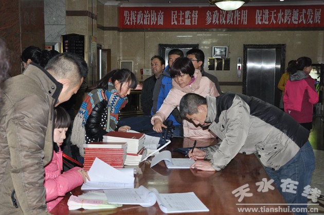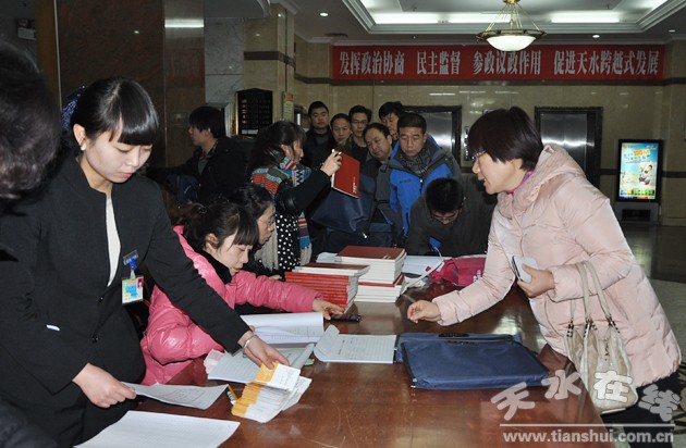 12月26日上午,參加政協(xié)第六屆天水市委員會第三次會議的委員們,帶著全市人民的殷切期望,陸續(xù)報(bào)到,簽取會議相關(guān)資料。