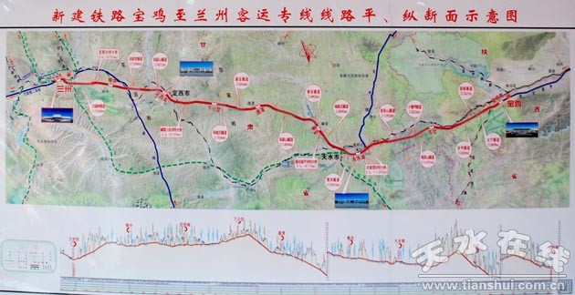 寶雞至蘭州客運專線東起陜西省寶雞市,向西經(jīng)甘肅省天水市、秦安縣、通渭縣、榆中縣,至蘭州樞紐引入蘭州西站。線路正線長度401公里(其中甘肅省境內(nèi)354.7公里),總投資647億元。線路在天水市境內(nèi)全長162.9公里,途徑秦州、麥積、秦安三縣區(qū),總投資約236.74億元。寶蘭客專地質(zhì)構(gòu)造復(fù)雜、施工難度大、重點控制工程多。共有隧道17.5座/108公里,其中10km以上隧道4座;橋梁27座/46.3公里;橋隧比例為94.83%;天水市境內(nèi)共設(shè)東岔、天水南、秦安3座車站。計劃2017年底全線建設(shè)完成。