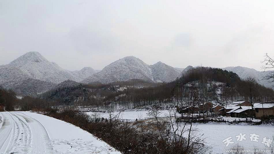 (圖為麥積山觀景臺(tái)后的村莊 天水在線攝影于2月9日下午 )