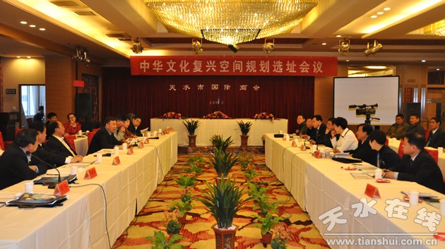 北京專家考察團(tuán)成員一行對這次中華文化復(fù)興空間規(guī)劃選址工作非常重視,來天水的前一天在北大科技大樓專題召開了中華文化復(fù)興空間發(fā)展規(guī)劃洽談會(huì),觀看了反映天水伏羲文化的有關(guān)影片,并對考察工作提出了具體要求。