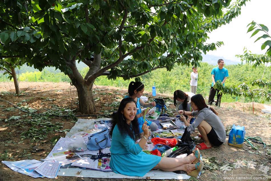 (煙鋪櫻桃園游人如織 天水在線攝于6月1日)