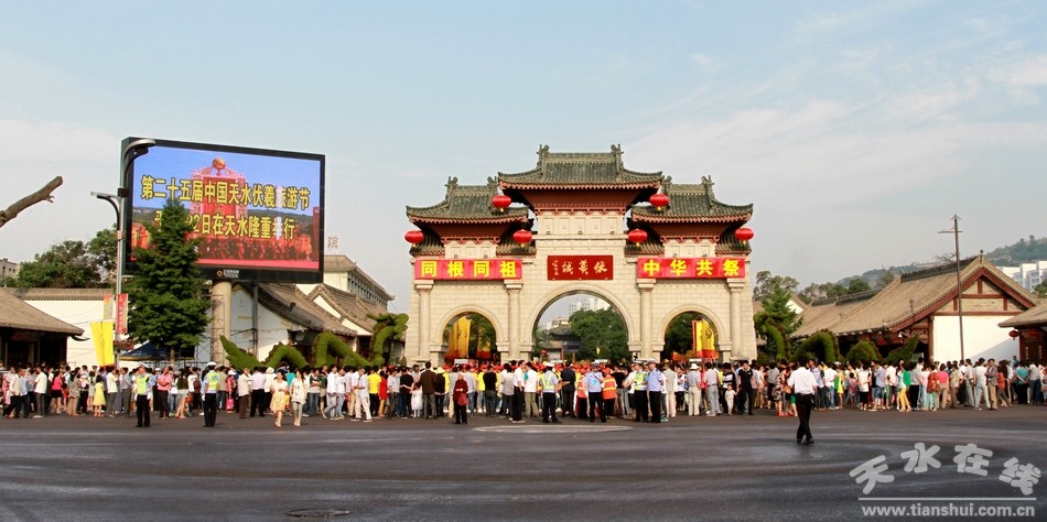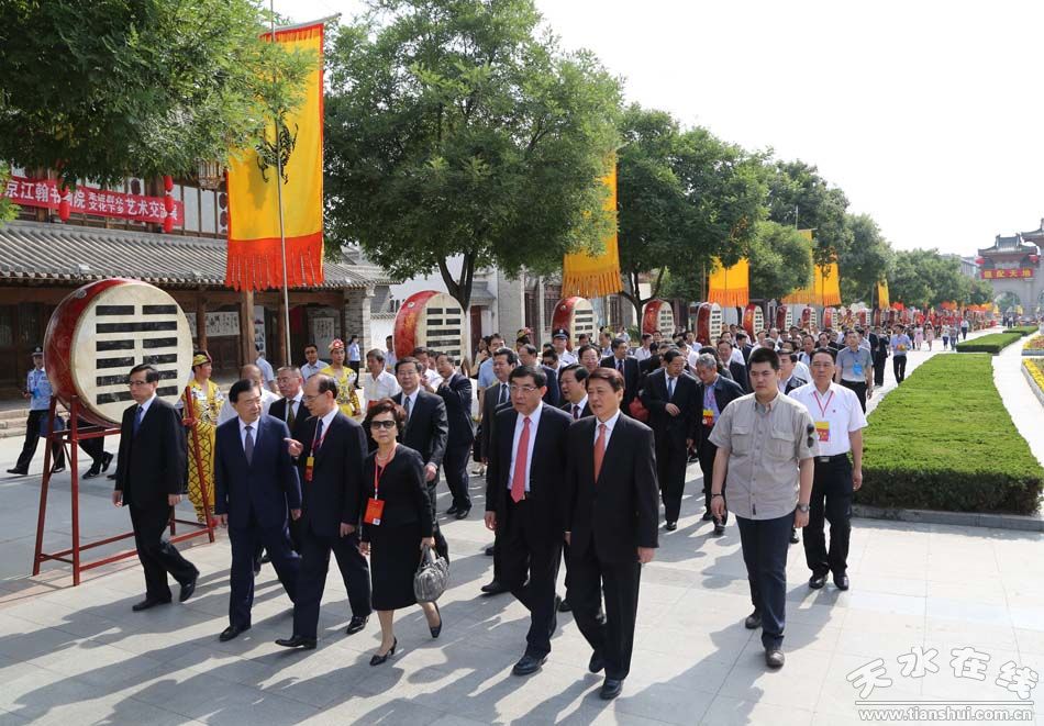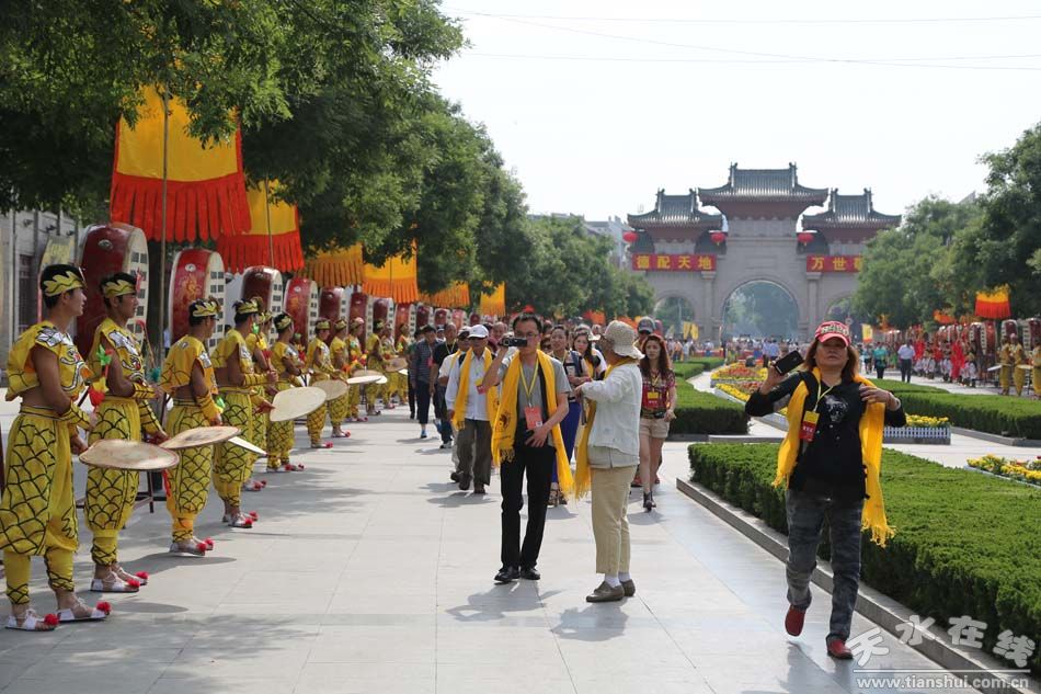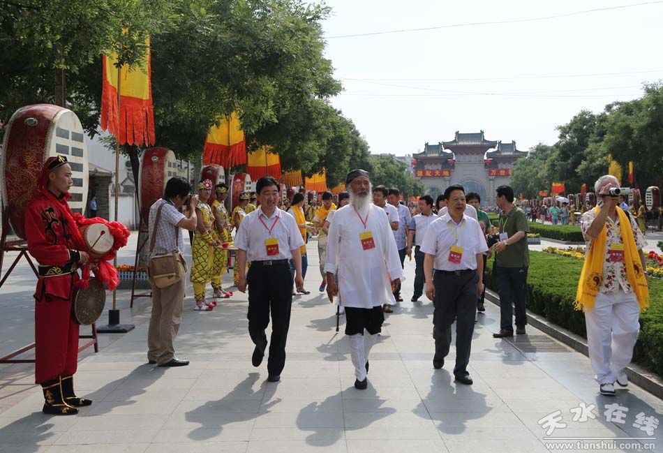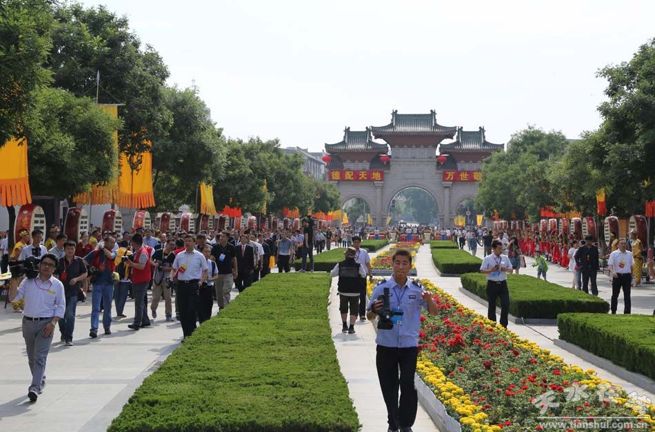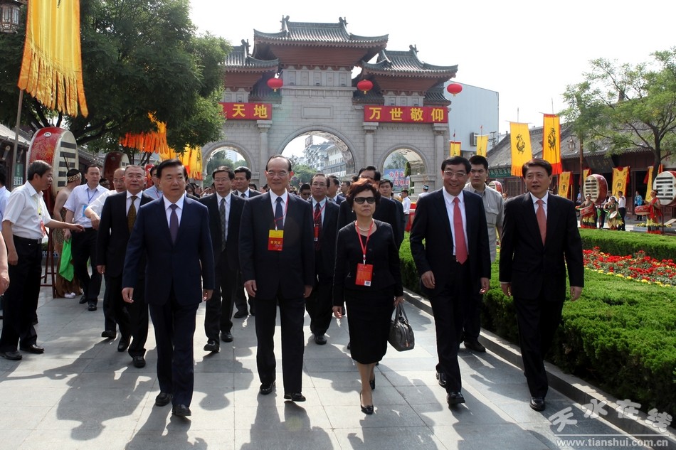 鼓聲雄渾,鐘鳴悠遠(yuǎn),龍旗獵獵,雅樂(lè)飄飄。2014(甲午)年甘肅省公祭中華人文始祖太昊伏羲大典今天上午在天水市隆重舉行。今年的公祭大典以“同根同祖、中華共祭”為主題,臺(tái)灣嘉義市大天宮同步進(jìn)行公祭活動(dòng),首次實(shí)現(xiàn)了海峽兩岸共祭伏羲。