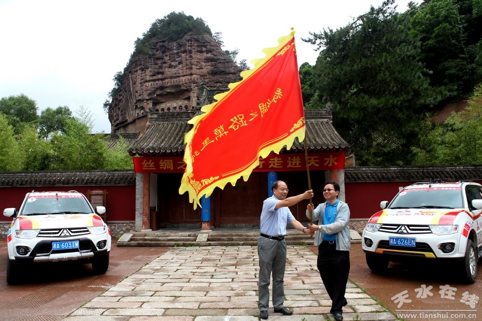 (天水市委常委、宣傳部長彭鴻嘉為“絲綢之路萬里行”采訪車隊授旗)