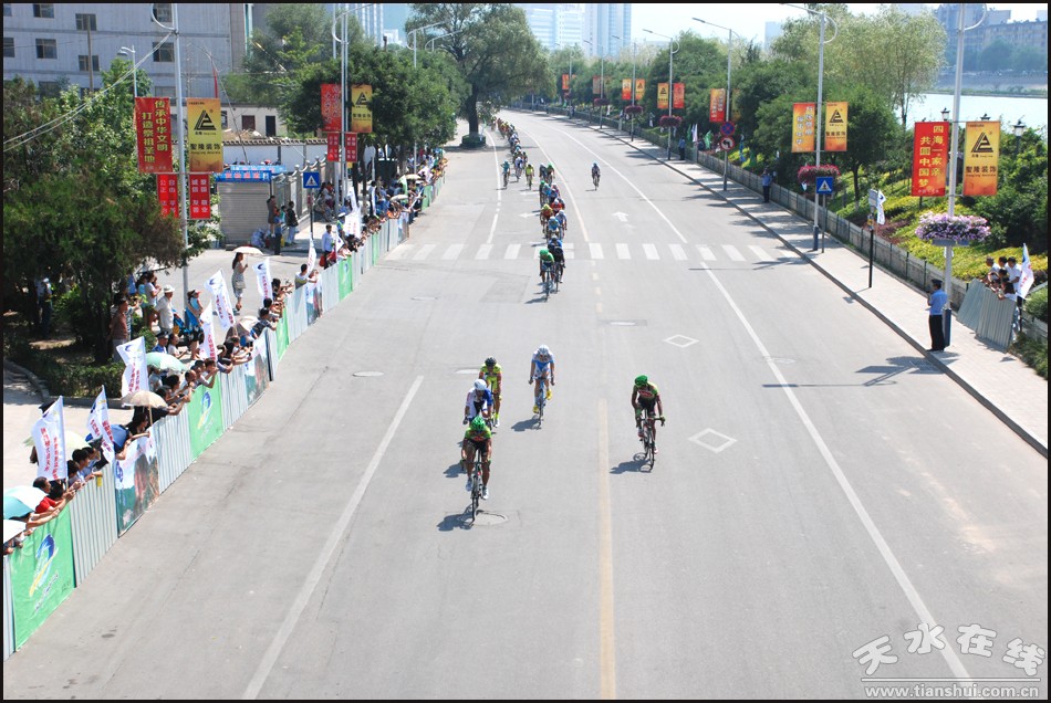 第十三屆“天佑德青稞酒杯”環(huán)青海湖國際公路自行車賽第九賽段天水繞圈賽7月15日在天水主城區(qū)進(jìn)行,來自世界五大洲22支參賽隊(duì)伍的198名運(yùn)動員參加了角逐。 (攝影:余偉)