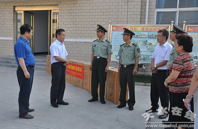 7月29日,在“八一”建軍節(jié)來臨之際,天水市委副書記、市長楊維俊帶領民政部門負責人走訪慰問了駐軍部隊官兵,為他們送去慰問品,向他們表示節(jié)日問候和美好祝愿,并對駐軍部隊官兵支援我市經(jīng)濟建設、維護社會穩(wěn)定所做的貢獻表示衷心的感謝。