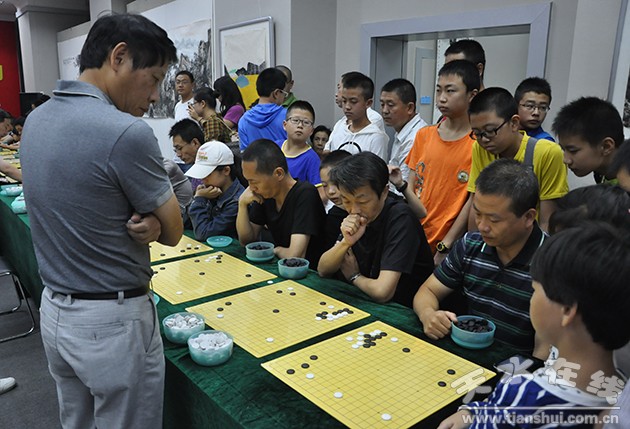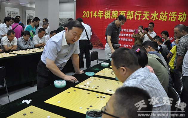 8月14日,參加2014棋牌西部行活動的棋牌國手,在天水金龍大酒店和我市選手互動。