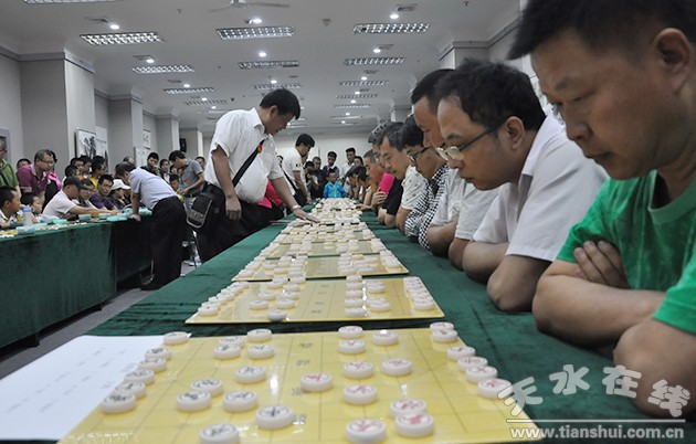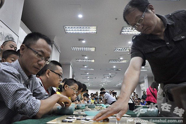 8月14日,參加2014棋牌西部行活動(dòng)的棋牌國(guó)手,在天水金龍大酒店和我市選手互動(dòng)。
