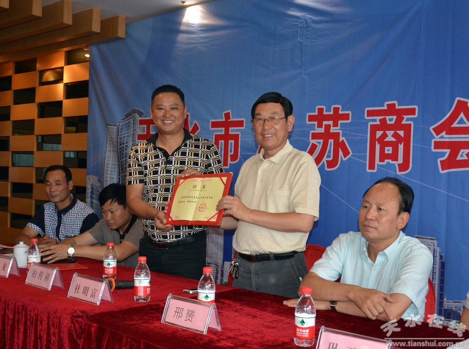天水市江蘇商會還舉行了第二屆會員一次理事會,聘請杜明富和張霞為名譽會長。