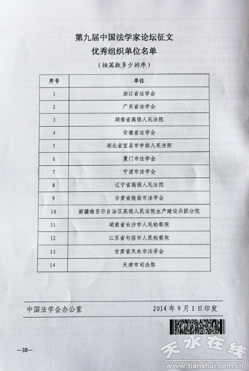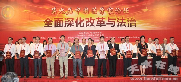 天水市法學(xué)會榮獲第九屆中國法學(xué)家論壇優(yōu)秀組織獎