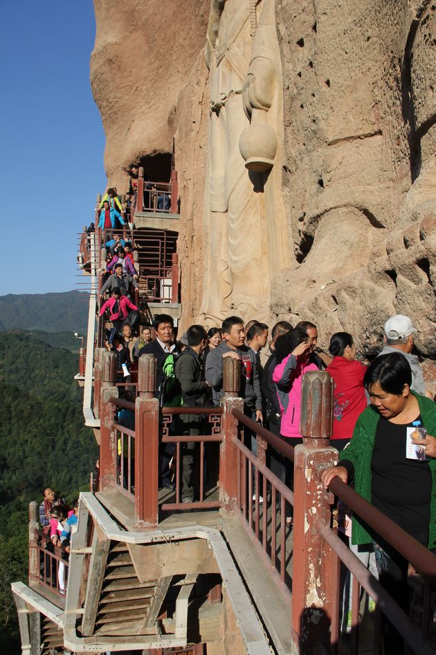10月5日,國(guó)慶長(zhǎng)假第5天,麥積山風(fēng)景名勝區(qū)旅游持續(xù)走熱,上午9:30景區(qū)6個(gè)停車(chē)場(chǎng)爆滿(mǎn),開(kāi)始從賈河臨時(shí)停車(chē)場(chǎng)、元店依次分流車(chē)流人流,游客高峰期從9時(shí)持續(xù)到16時(shí)左右。景區(qū)游客量總體平穩(wěn),游客進(jìn)出暢通,旅游秩序井然。當(dāng)天麥積山風(fēng)景名勝區(qū)接待游客30926人次,同比增長(zhǎng)26%。其中麥積山石窟景區(qū)接待游客18696人次,仙人崖景區(qū)接待游客4450人次。